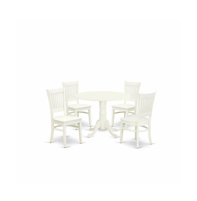 East West Furniture 5 Piece Dining Room Table Set Consists of 1 Drop Leaves Dining Room Table and 4 Linen White Dinning Chairs with Slatted Back