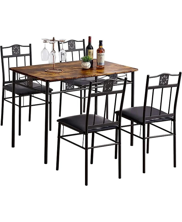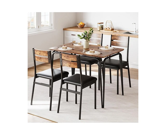Ironck Dining Table Set for 4 with Upholstered Bench and 2 Chairs, Brown