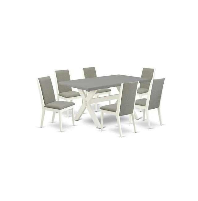 East West Furniture 3 Piece Dining Table Set - Linen White Dinner Table and 2 Linen White Kitchen Chairs with Double X-Back - Linen White Finish