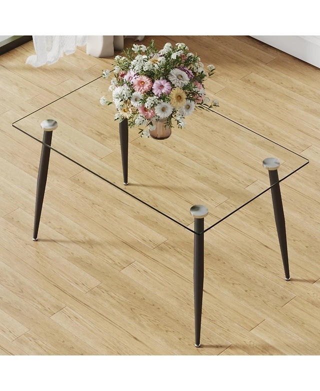 Streamdale Modern Glass Dining Table with Gold Legs, Multipurpose for Home/Office (71"x35"x30")
