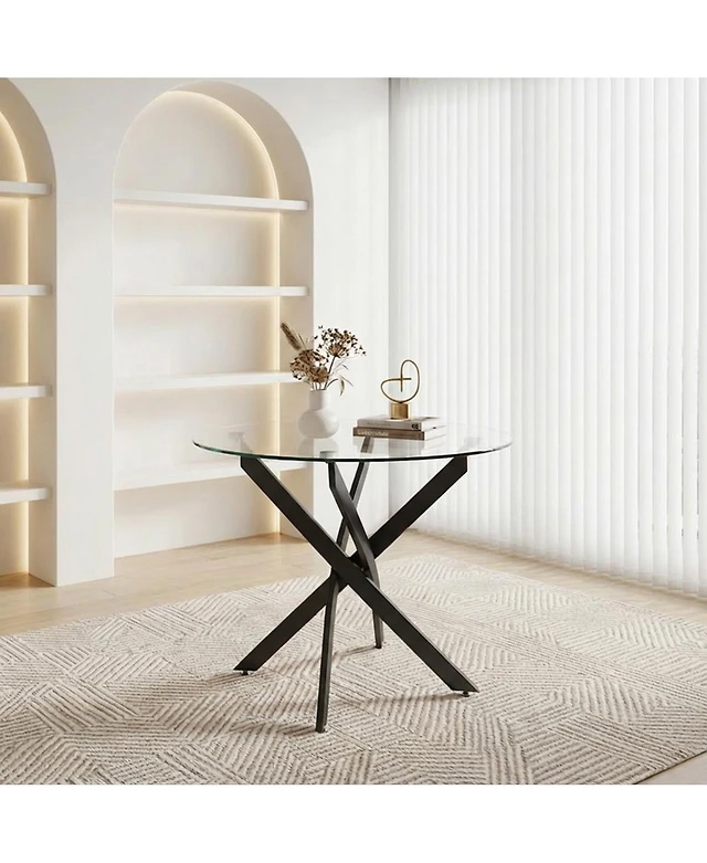 Streamdale Furniture Round Clear Glass Dining Table with Gold Ring Legs
