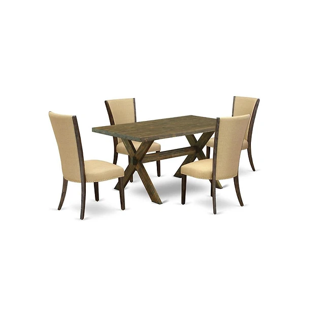 East West Furniture 5Pc Dining Table Set Contains a Wood Dining Table and 4 Upholstered Dining Chairs with Brown Color Linen Fabric, Medium Size Table