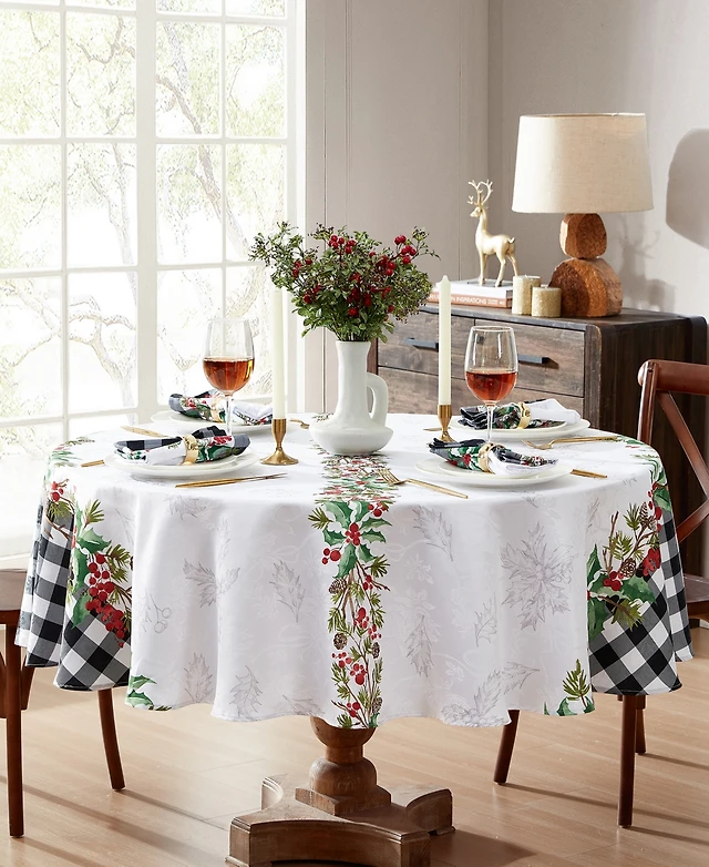 Elrene Classic Holly Scallop Border Round Tablecloth, 70"