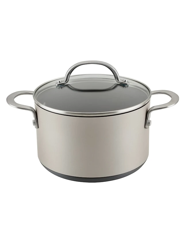 Rachael Ray Cook + Create Hard Anodized Nonstick Saucier with Lid and Helper Handle, 4.5 Quart