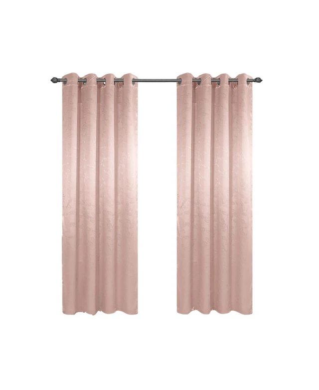 Olivia Gray Palm Floral Textured Jacquard 54 x 84 in. Single Rod Pocket Curtain Panel w/ Attached 18 in. Valance in Rose
