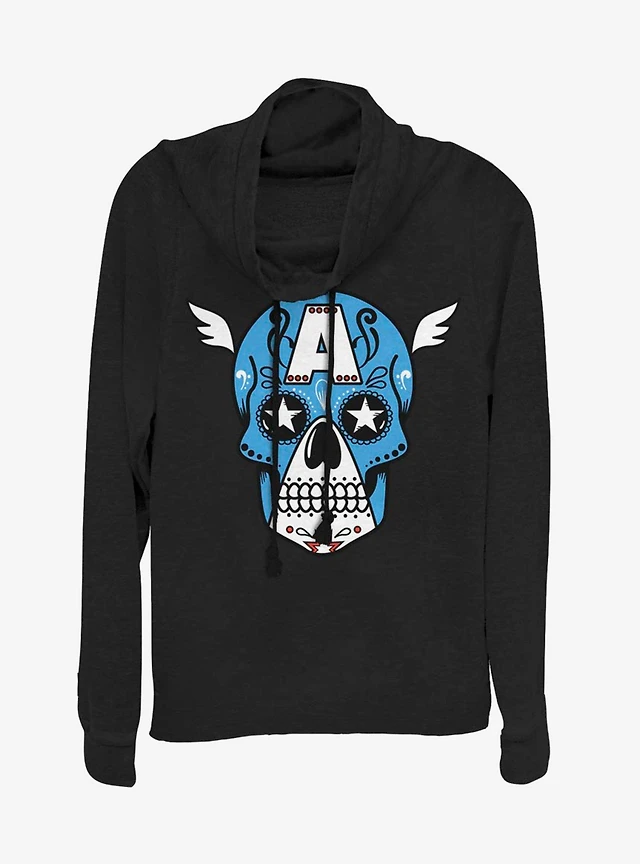 Marvel Captain America Sugar Skull Cowl Neck Long-Sleeve Girls Top