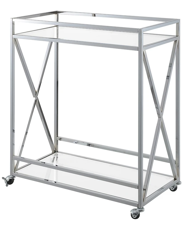 Simplie Fun Modern Z-Shaped Bar Cart with Tempered Glass Shelves and Locking Casters