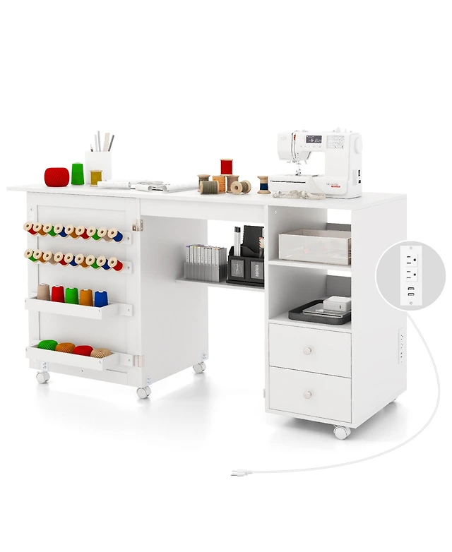 Folding Sewing Table Charging Station Multifunctional Sewing Machine Cart Table