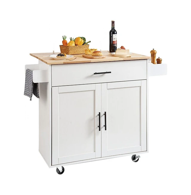 Volenca 46" Mdf, Rubberwood Kitchen Island Cart with Wood Top, Storage Cabinet, Adjustable Shelf, Drawer, Farmhouse Rolling Table