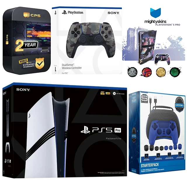 Sony PlayStation 5 Pro with Extra Controller, Gamer Starter Kit and MightySkins Decal Voucher Plus 2 Year Cps Extended Warranty
