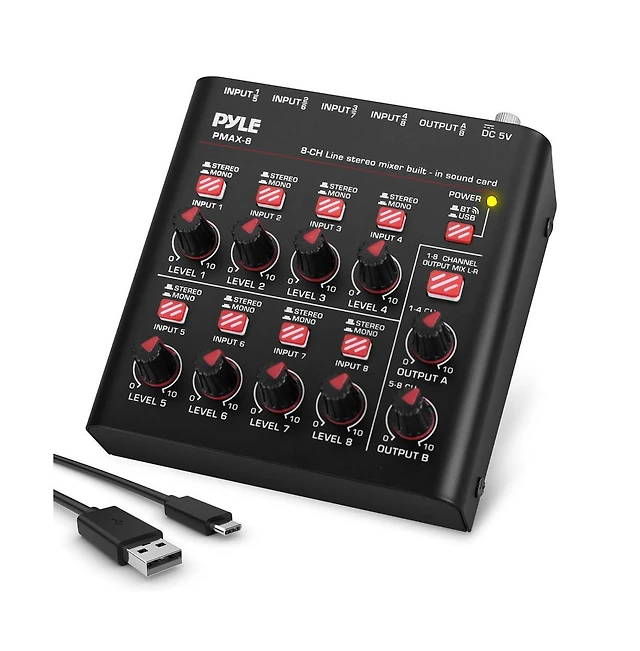 Pyle Compact Bluetooth 8-Channel Line Mixer with Usb Audio Interface
