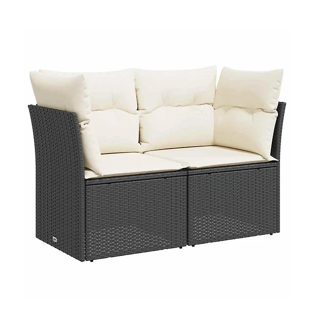 Garden Sofa Black Pe Rattan 2-seater Removable Covers