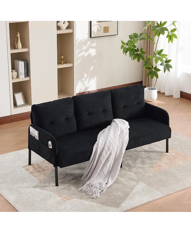 Streamdale Corduroy Loveseat Sofa with Pillows