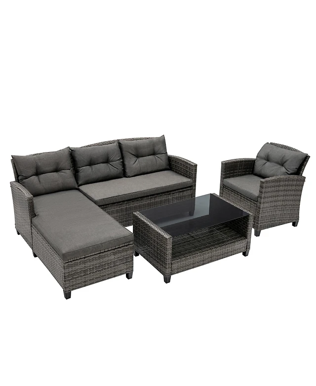 Gymax 4PCS Patio Furniture Set Acacia Wood Outdoor Sofa W/Nylon Rope Armrest Cushions