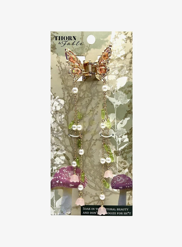 Thorn & Fable Butterfly Flower Chain Claw Hair Clip