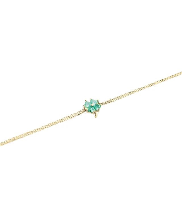 Sterling Silver Four Leaves Clover Bracelet - Green