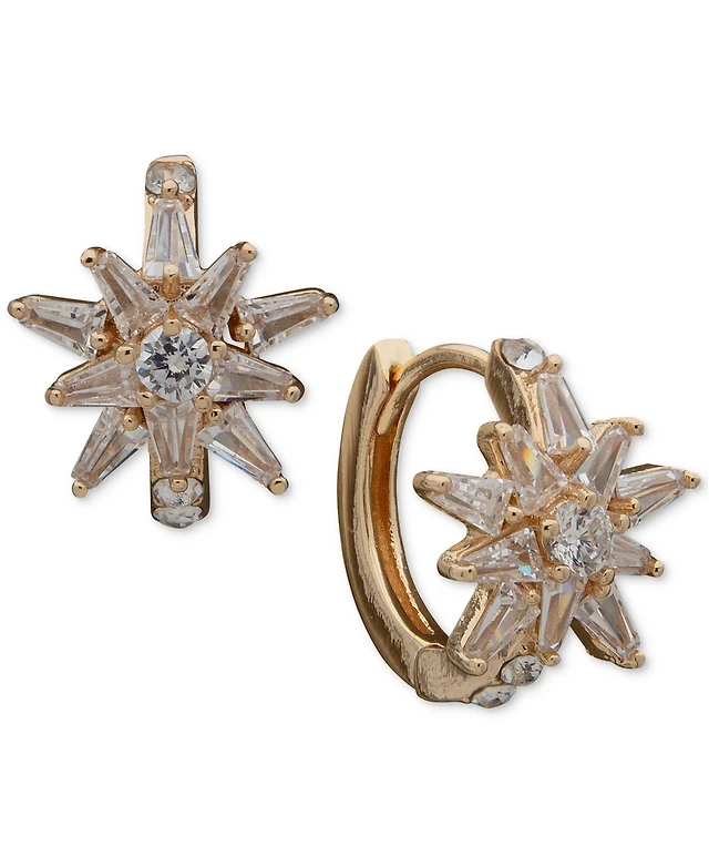Anne Klein Gold-Tone Small Cubic Zirconia Starburst Hoop Earrings, 0.51"