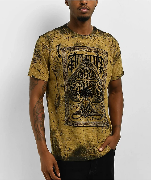 Raven Heart Acid Wash Turnup Sleeve T-Shirt
