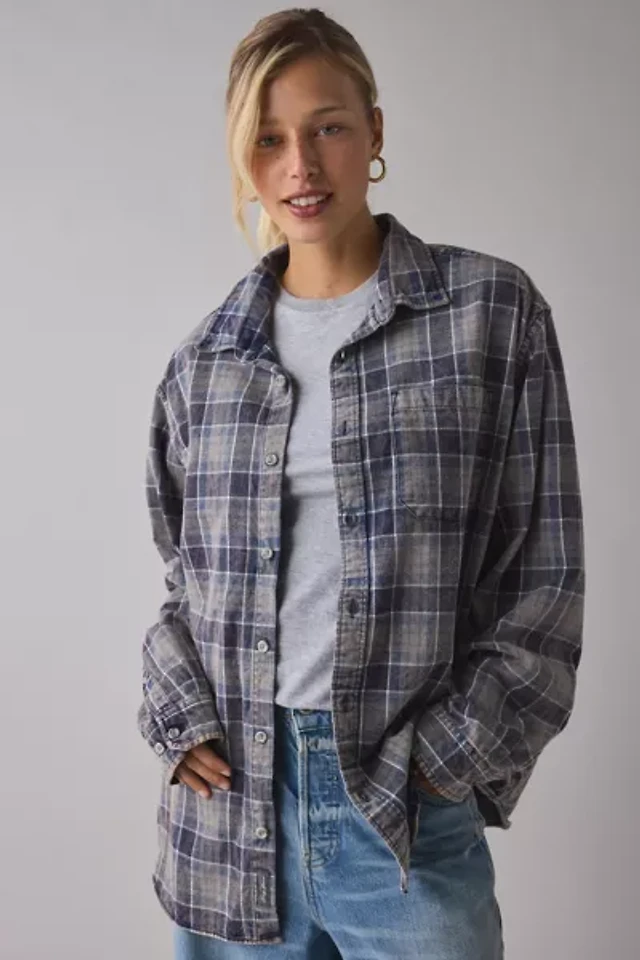 ReMADE By UO Acid Washed Oversized Flannel Shirt