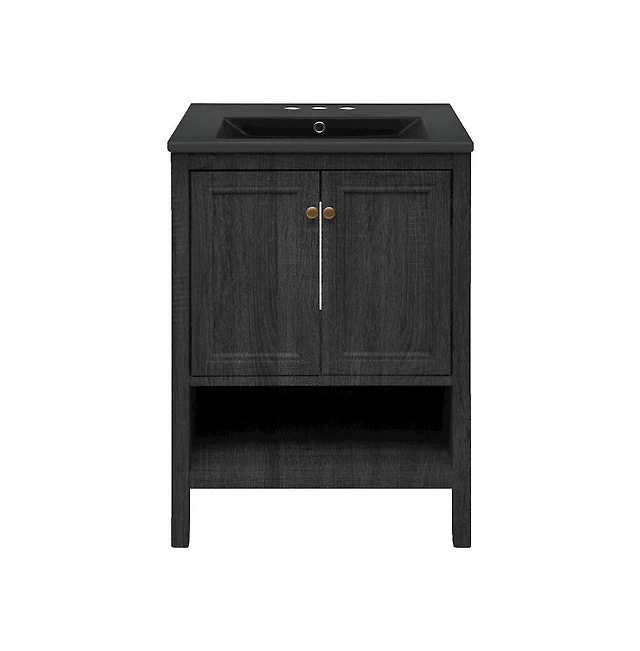 Annecy 24 in. Phantom Black Bathroom Vanity With White, 3-Hole Ceramic Sink Top