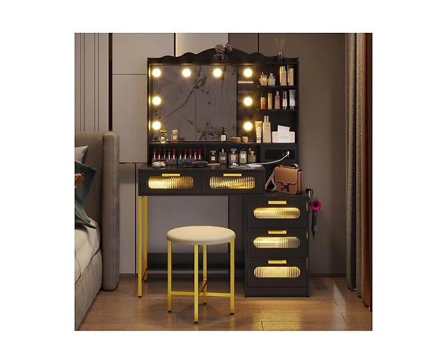 Bedroom Makeup Vanity Desk with Hollywood Mirror and Lights