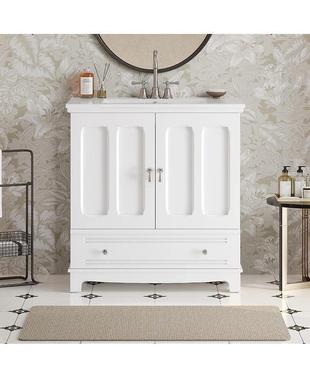 Casainc 30-Inch Bathroom Vanity with Ceramic Sink, Small Cabinet, 2 Drawers & Adjustable Storage Shelf