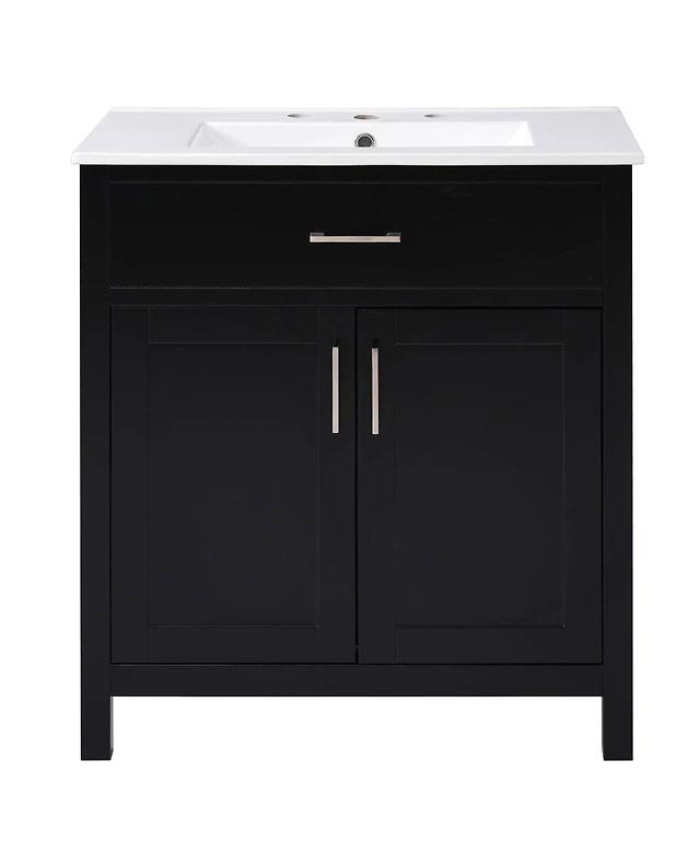 Sillysis 30" Freestanding Bathroom Vanity with Ceramic Sink, 3 Drawers & Soft Closing Doors, Modern Storage Cabinet