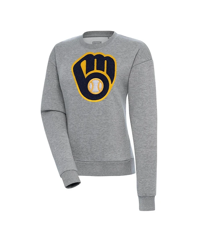 Women's Heathered Gray Clemson Tigers Moose Applique Quilted Crewneck Sweatshirt