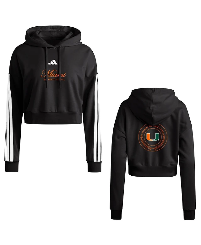 Adidas Women's Black Miami Hurricanes Campus Queen Cropped Pullover Hoodie