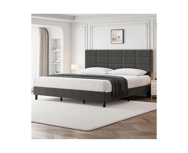 gaomon Full/Queen/King Upholstered Bed Frame, Velvet Frame Queen With Adjustable Headboard, Platform And Noise-Free, No