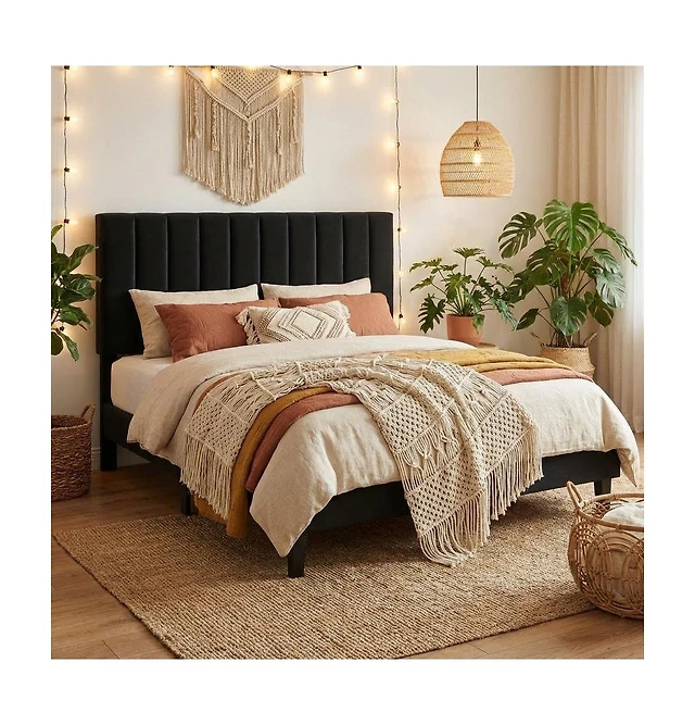 gaomon Bed Frame Upholstered Headboard Platform Adjustable Headboard Wood Slat Support No Box Spring Noise