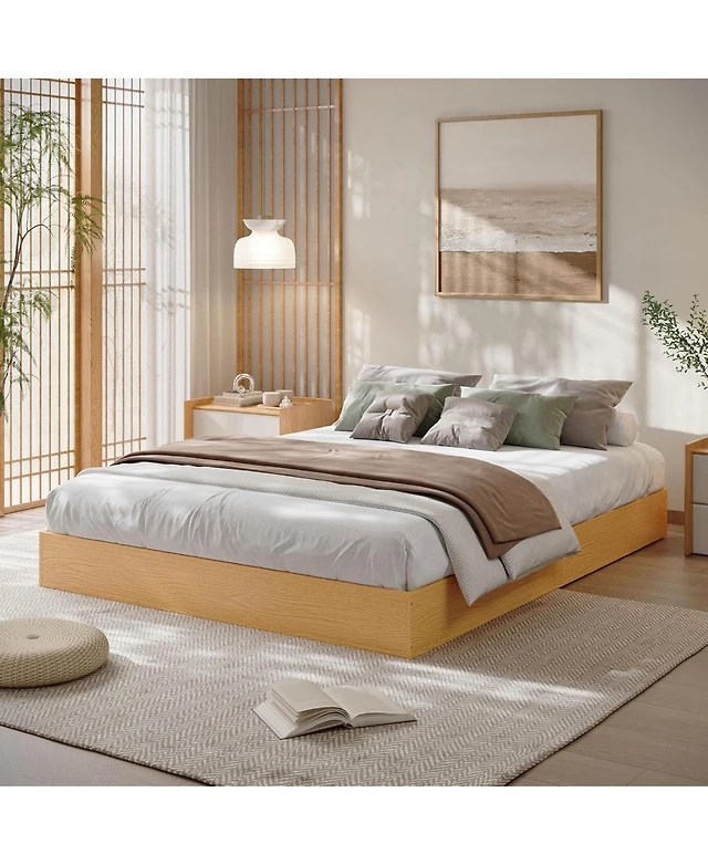 Gaomon Wood Platform Bed With Sturdy Wooden Slats Floor Standing Bed Frame Modern Minimalist Design Bed Frame No Box Spring Needed