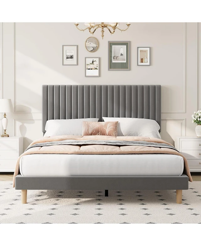 gaomon Vertical Stripe Bed Frame, Upholstered Bed with Modern Design, No Box Spring Needed, Sturdy Construction for Bedroom