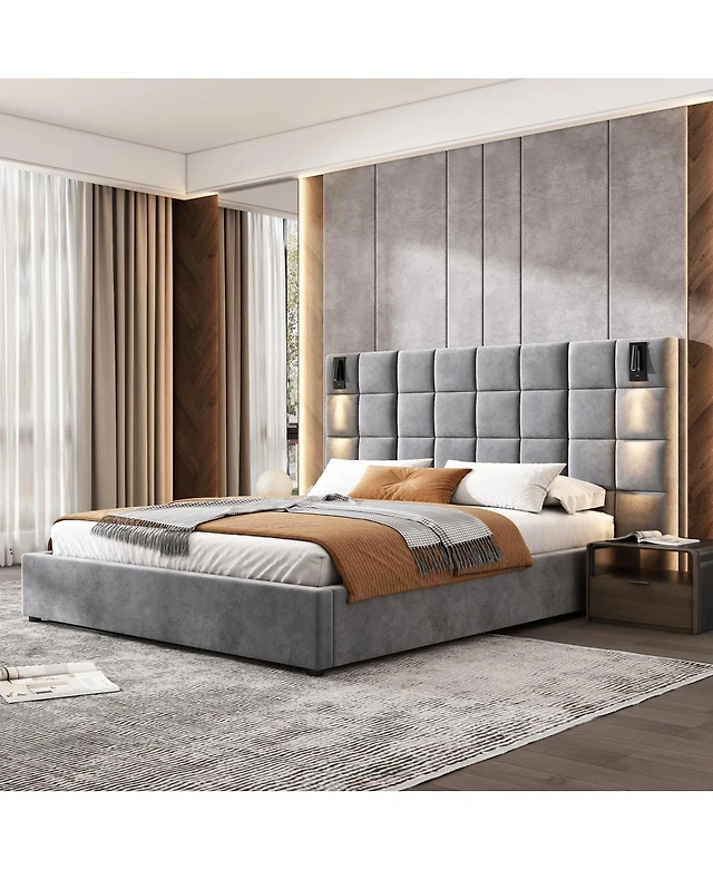 Gouun Queen Bed Frame With 2 Tier Storage Headboard Charging Station