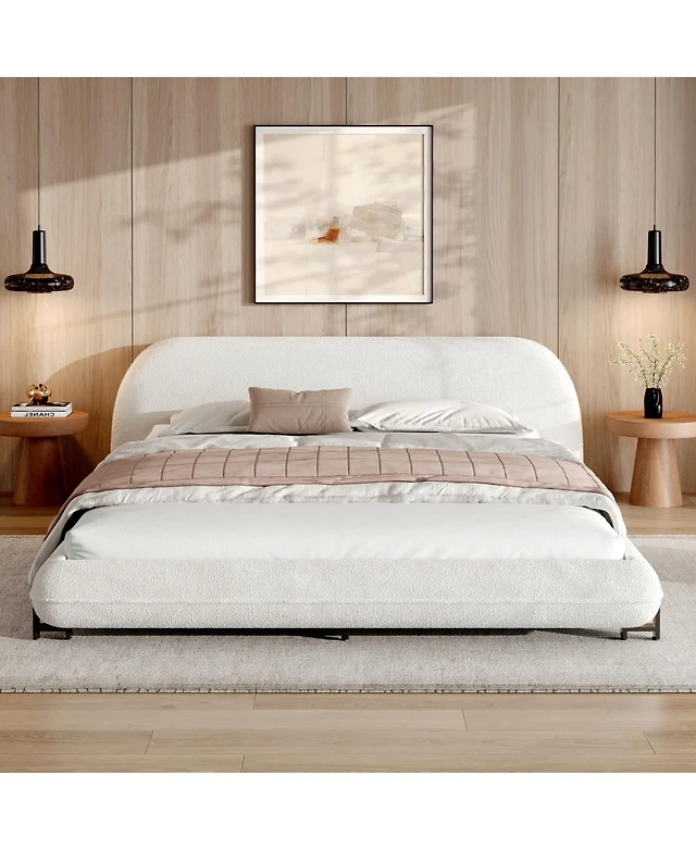 Streamdale Furniture Queen Size White Pu Leather Upholstered Platform Bed Frame, No Box Spring Needed