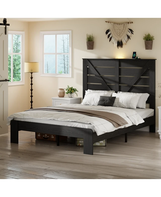 Streamdale Furniture Wood Platform Bed Frame Queen w/Storage, Led, Usb