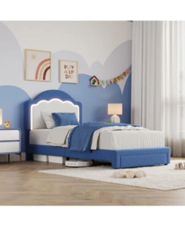 gaomon Twin Upholstered Bed Frame with Adjustable Headboard & Smart Led with drawer