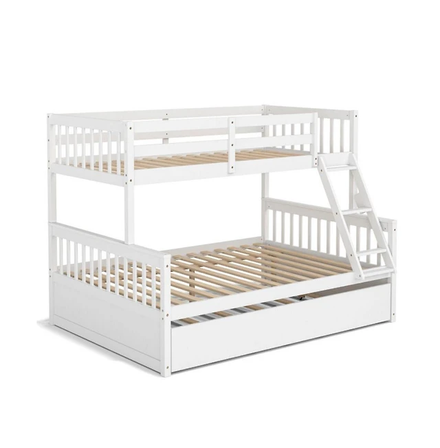 Streamdale Furniture Rubber Wood Full/Full Bunk Bed with Trundle and Guardrails, Convertible to 2 Beds