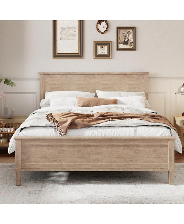 Gaomon Wood Platform Bed With Fluted Design Low Profile Bedframe Minimalist Bed Base With Noise Free Easy Assembly No Box Spring