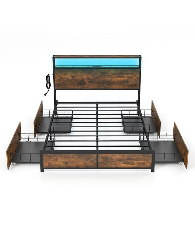 Gaomon Metal Platform Bed Frame With Headboard 4 Storage Drawers Charging Station Strong Slat Support