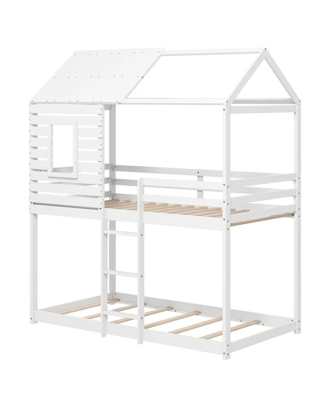 Streamdale Furniture Twin Over Twin Bunk Bed with Roof, Window, Ladder