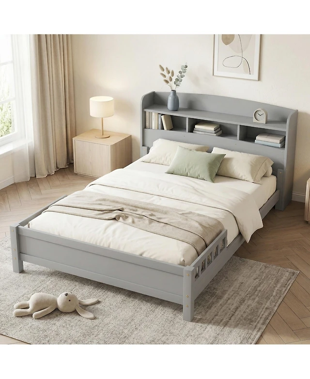 Streamdale FurnitureQueen Upholstered Platform Bed with Headboard, Chenille Fabric, Grey