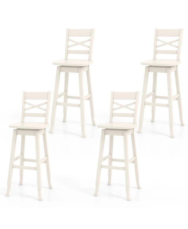 Gymax 4PCS 30'' Bar Height Stool Swivel Bar Stool Rubber Wood Inclined Backrest