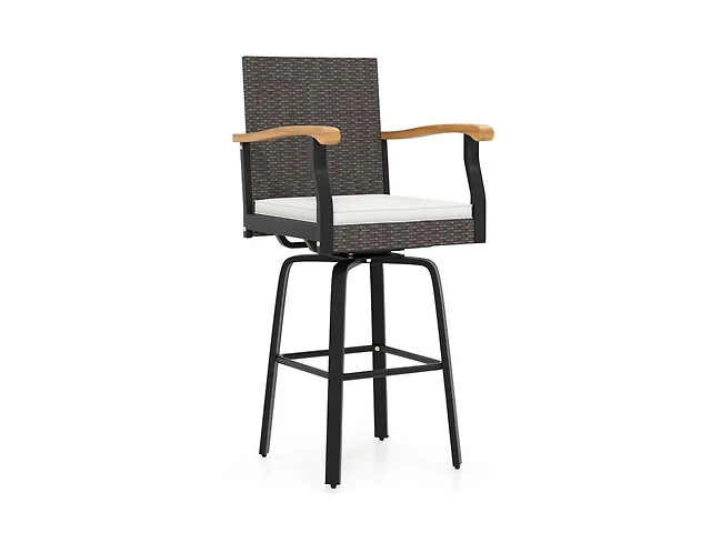 Costway 29" Patio 360degree(s) Swivel Bar Stool with Cross-Woven Armrests Footrest and Seat Cushion