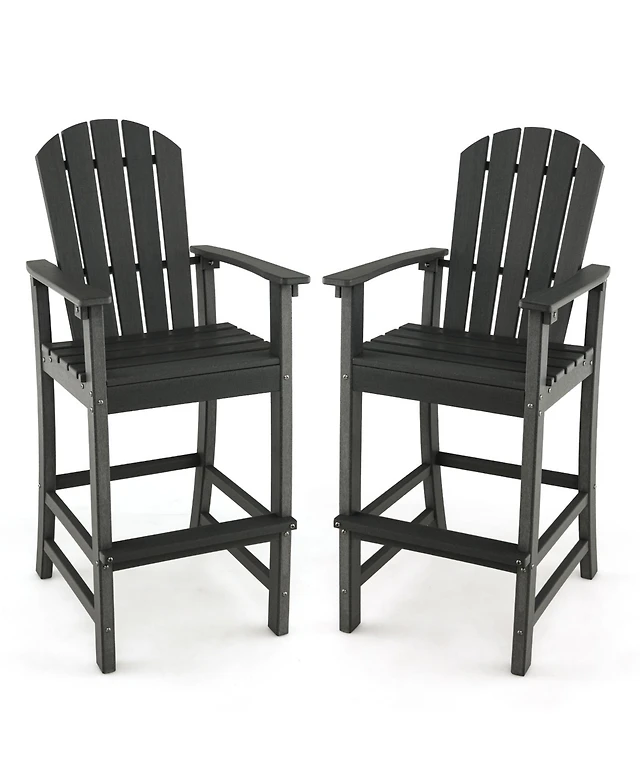 Gymax Set Of 2 Outdoor Hdpe Bar Stool Patio Tall Chair Backrest Footrest All Weather