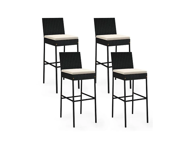 Gymax 4PCS Patio Pe Wicker Bar Chairs Counter Height Barstools With Armrests and Cushions