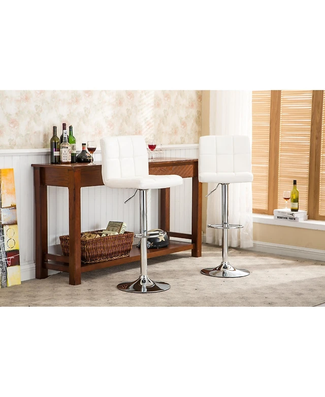 Gymax Adjustable Bar Stool Set of 4 Leathaire Bar Chairs w/ Padded Seat & Footrest