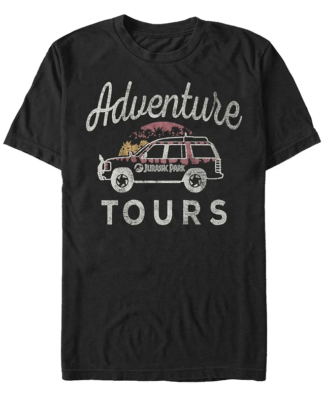 Jurassic Park Men's Distressed Vintage-Like Adventure Tours Short Sleeve T-Shirt