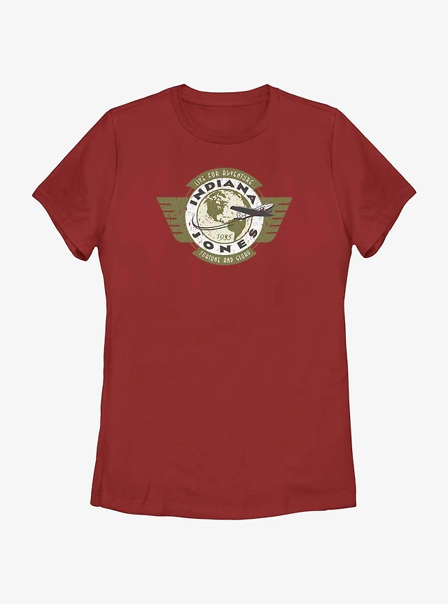 Indiana Jones Live For Adventure Vintage Aviation Badge Womens T-Shirt