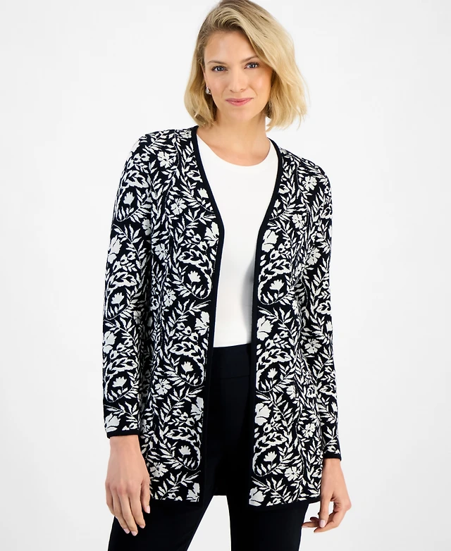 CeCe Women's Geo Pattern Jaq Button Up Cardigan Sweater